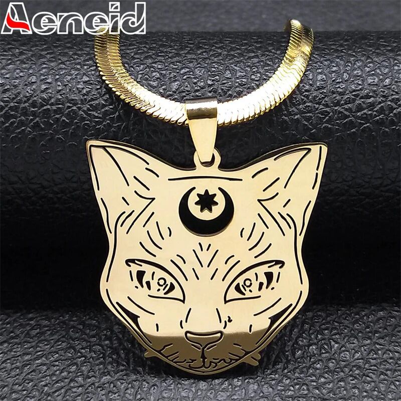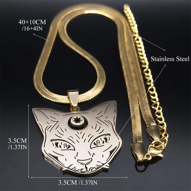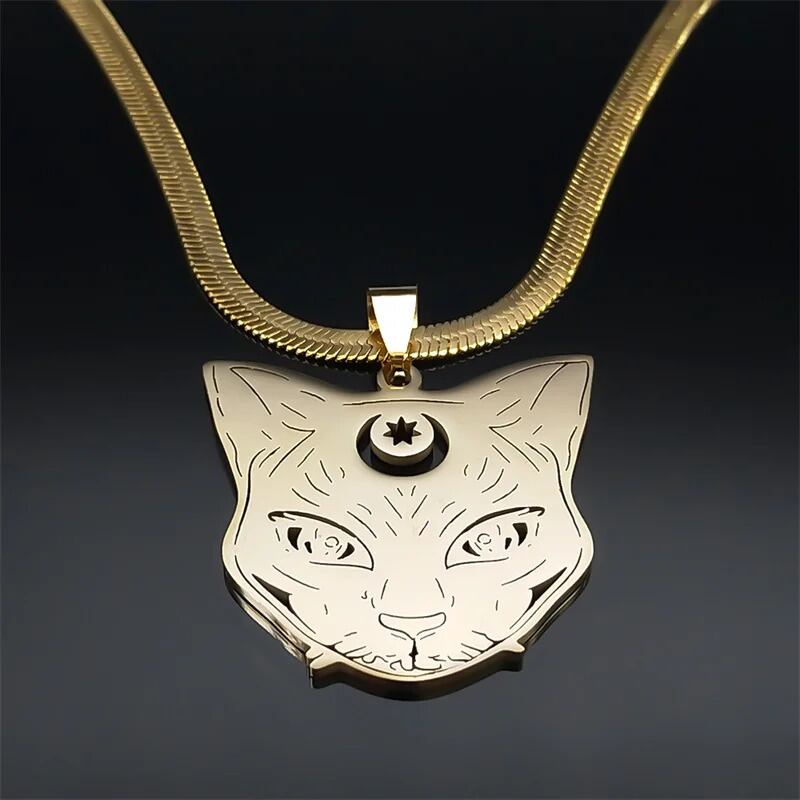 魔術 ウィッチクラフト 月 ムーン 猫 ネコ キャット 動物 アニマル ヘッド ネックレス レディース メンズ ステンレス スチール ゴールド カラー 蛇 スネイク ヘビ 鎖骨 チェーン ジュエリー N
