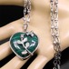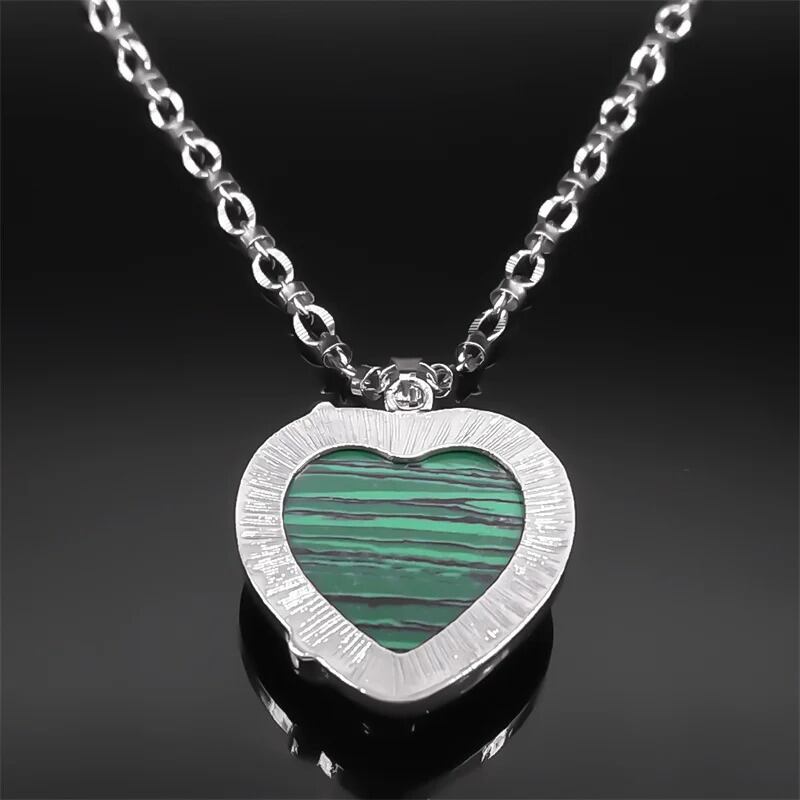 ローズ 花 フラワー 桃 ピーチ 植物 プラント 果物 フルーツ ハート 緑 グリーン マラカイト ストーン アロイ ペンダント ネックレス レディース ステンレス スチール チェーン ジュエリー ギフト  襟