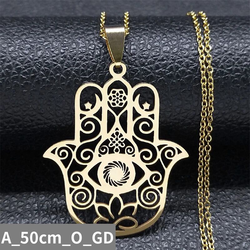 ハムサ ハンド ムスリム ユダヤ 透かし ネックレス レディース  ファティマ ロータス すいれん はす スイレン ハス 蓮 植物 プラント 花 フラワー ステンレス スチール ジュエリー ギフト N8083S