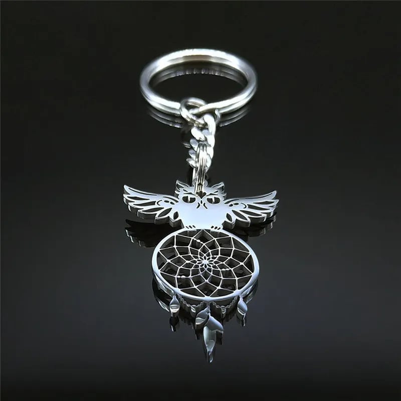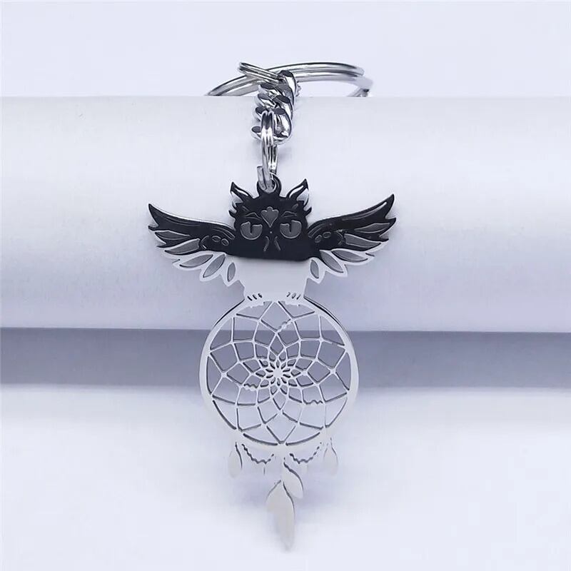 ボヘミア フクロウ 鳥 バード ドリームキャッチャー キーリング キーホルダー レディース メンズ シルバー カラー ステンレス スチール キーチェーン ジュエリー パラ K7029S