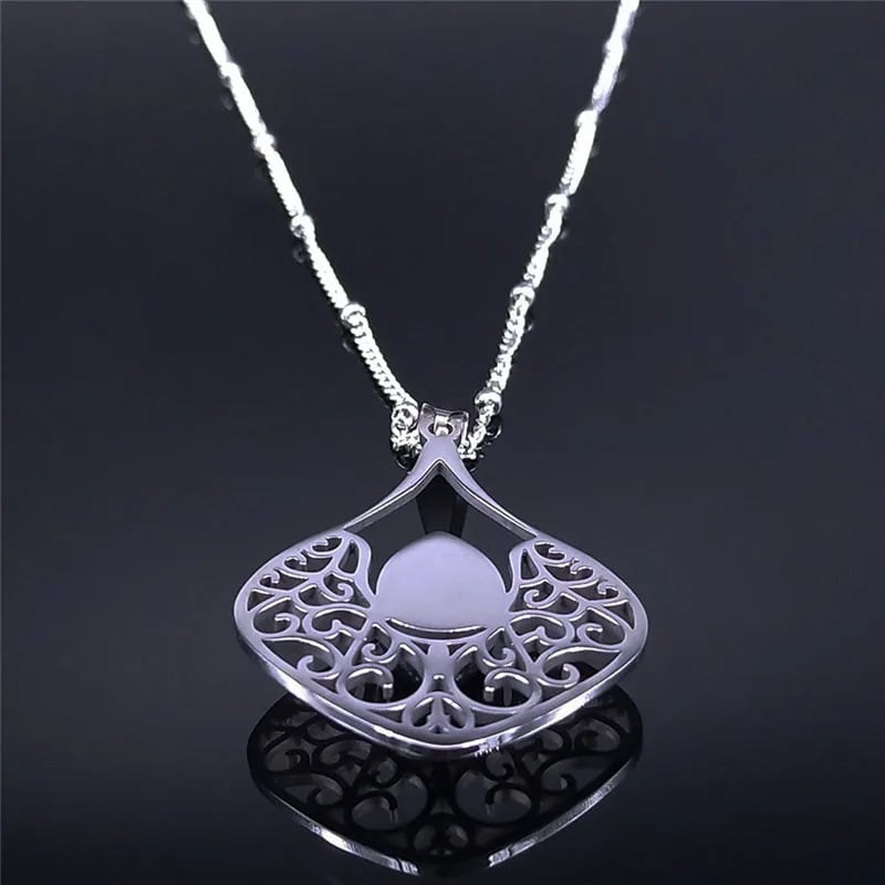 BOHO 花 フラワー ナチュラル ストーン ステンレス スチール チャーム ネックレス シルバー カラー ボヘミアン レディース ジュエリー N3895S