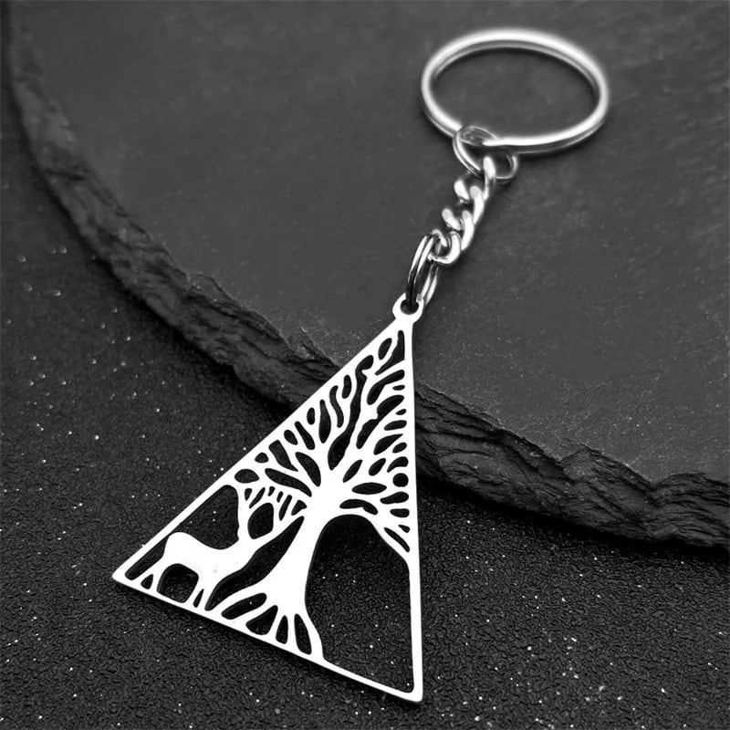 ファイン ファッション: ボヘミアステンレススチールの美的トライアングルツリーオブライフミルディアキーホルダー