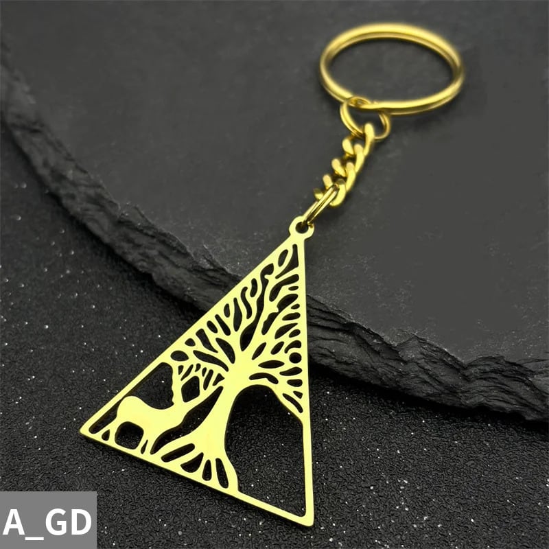 三角形 トライアングル 木 ツリー 木の葉 リーフ 植物 プラント ライフ 鹿 ディアー 動物 アニマル 鍵 キー チェーン レディース メンズ ステンレス スチール ゴールド シルバー カラー 透かし キーホルダー キーリング ジュエリー ギフト
