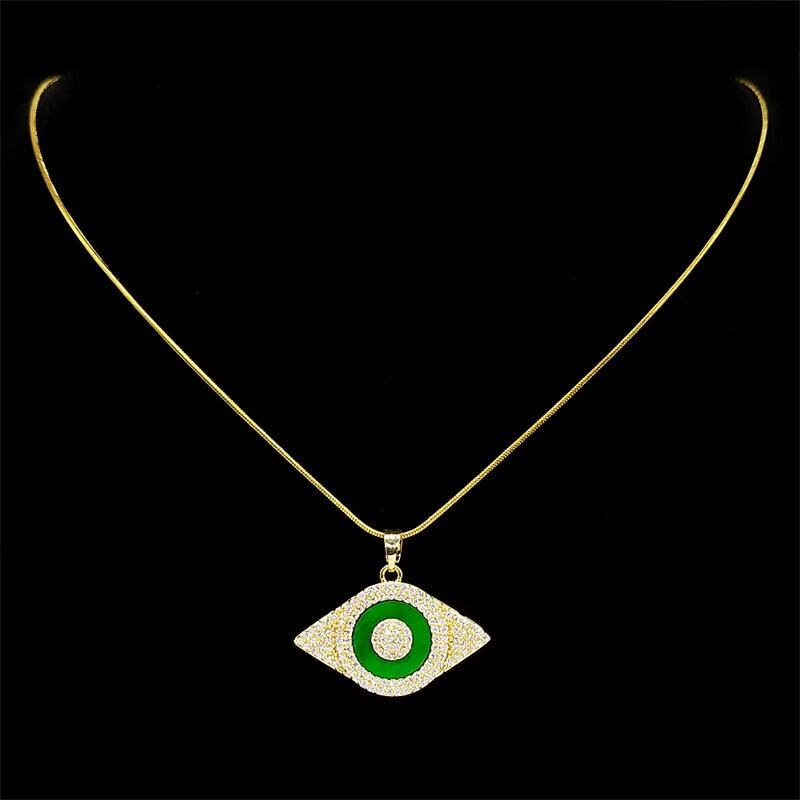 ファッション 緑 グリーン オバール 目 アイズ ゴッド コッパー カッパー ペンダント ネックレス チャーム レディース ジルコン ジルコニア 象眼細工 パーティ ギフト ステンレス スチール チェーン ジュエリー