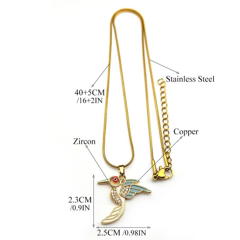 ネックレスジュエリー:レディース高級ジルコンハチドリ動物ステンレス鋼チェーンジュエリーギフト