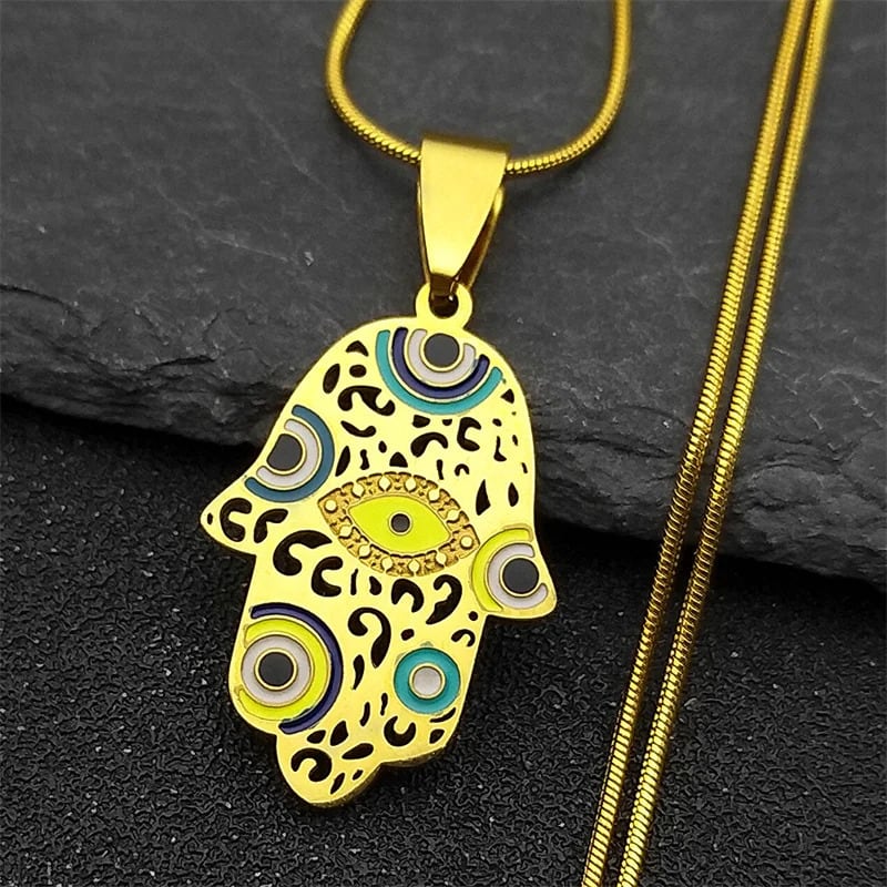 ジュエリースタイル:ファティマのハムサの手 邪眼の色のペンダントネックレス
