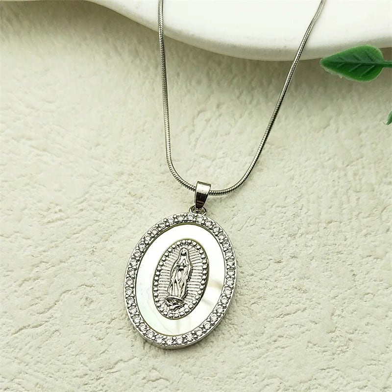 ファッション シャイニー ジルコン ジルコニア バージン メアリー コッパー カッパー ペンダント ネックレス レディース メンズ ステンレス スチール シルバー カラー 宗教的 ジュエリー ギフト