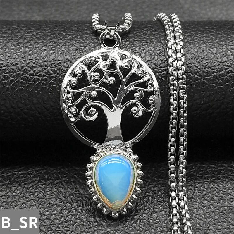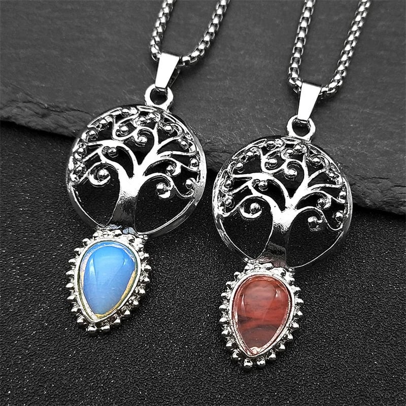 ジュエリースタイル: 生命の木天然石ウォータードロップペンダントネックレス