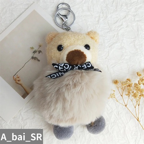 スタイル:ポンポンかわいいクマのふわふわぬいぐるみキーホルダー