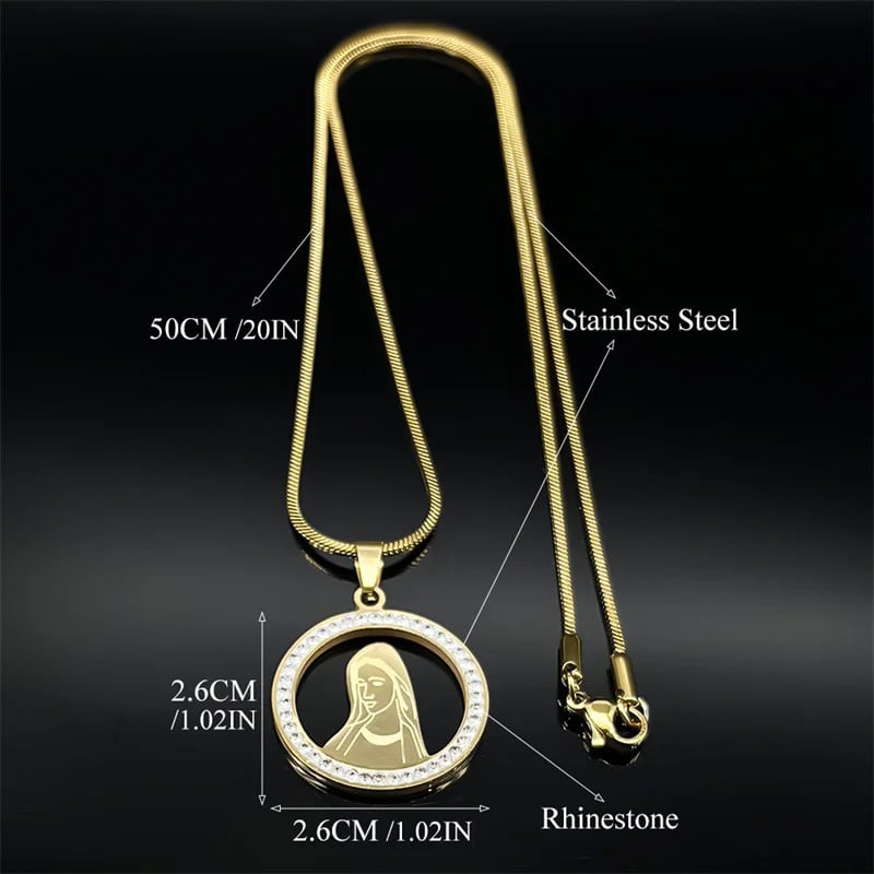 バージン メアリー プレイ クリスタル チョーカー ペンダント ネックレス レディース メンズ ステンレス スチール カトリック 蛇 スネイク ヘビ 動物 アニマル チェーン お守り ジュエリー
