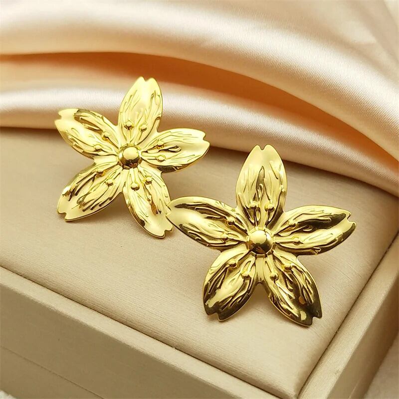 ビンテージ 花 フラワー ゴールド プレート スタッド ピアス ステンレス スチール レディース パーティ ジュエリー ファッション アクセサリー