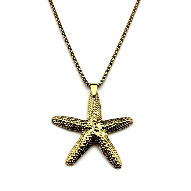 ジュエリースタイル:ボヘミアンゴールドカラープレートボックスチェーンヒトデペンダントネックレス