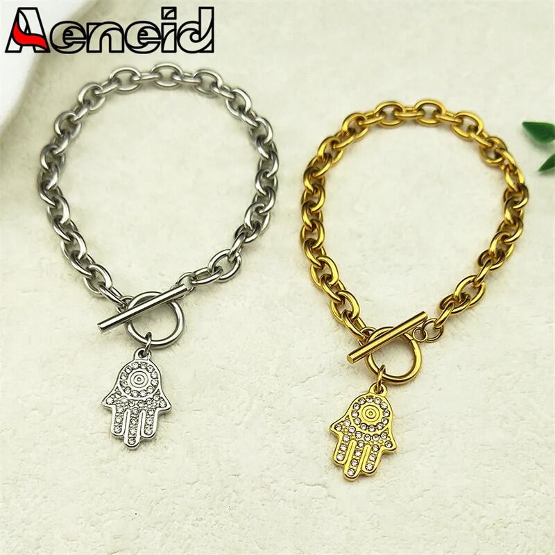 クリスタル ハムサ ハンド ペンダント ブレスレット レディース メンズ ステンレス スチール ゴールド カラー ファティマ イスラム バングル パーティ ジュエリー ギフト