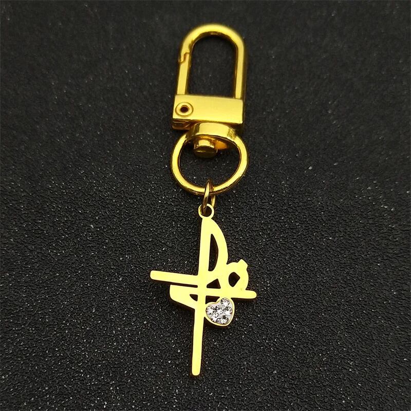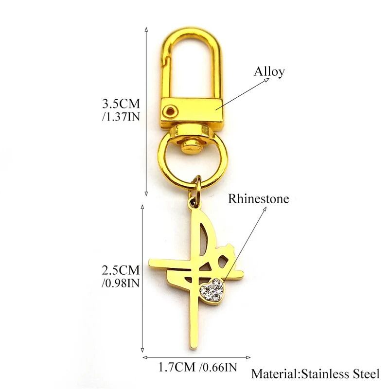 キーホルダータイプ:ユダクロスハート型ラインストーンクロスジュエリー