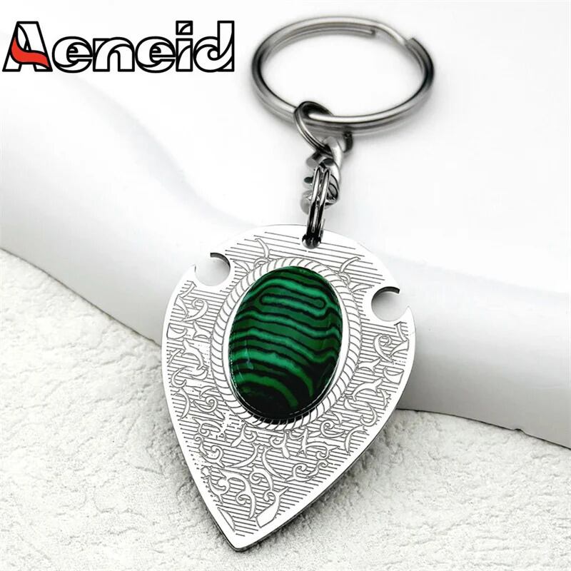 適応: ボヘミアステンレススチールマラカイトストーンキーチェーン