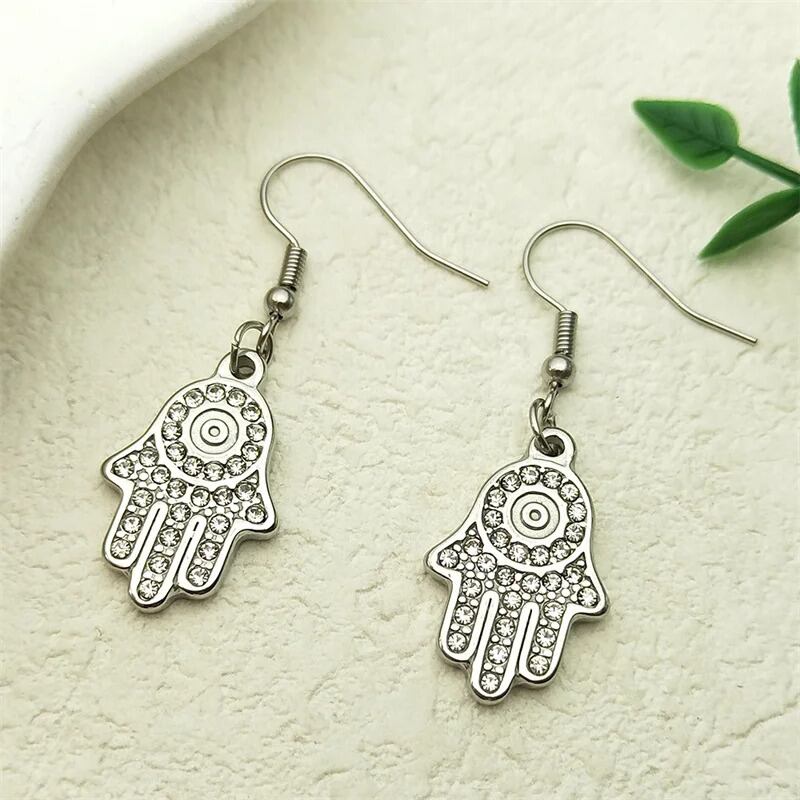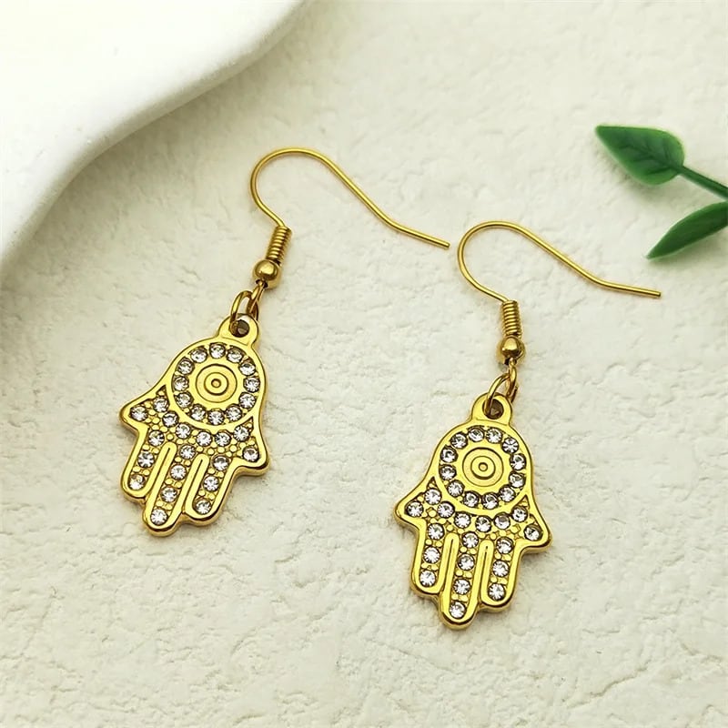 クリスタル ハムサ ハンド フープ ピアス レディース メンズ ステンレス スチール ゴールド カラー ファティマ イスラム ダングル 揺れる パーティ ジュエリー