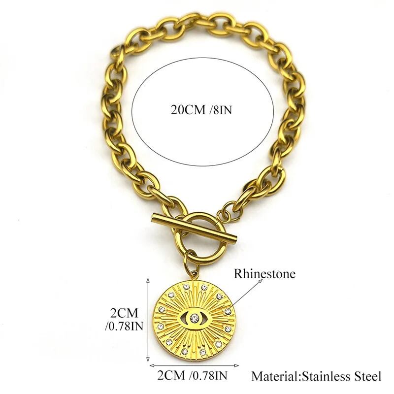 ラインストーン 悪魔 デーモン 目 アイズ ペンダント ブレスレット レディース メンズ ステンレス スチール ゴールド カラー 悪 エビル バングル ハンド チェーン ジュエリー ギフト