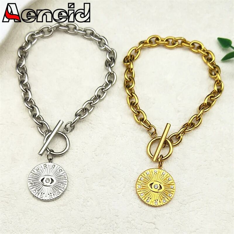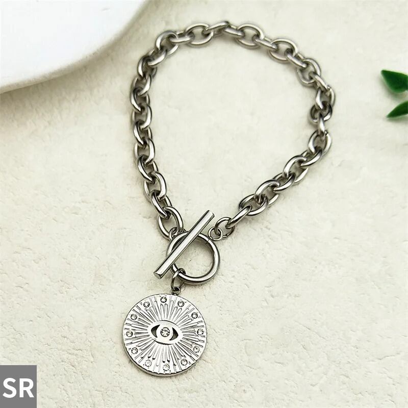 ペンダント バングル ブレスレット ラインストーン ステンレス ゴールド チェーン レディース メンズ 悪魔 デーモン 目 アイズ
