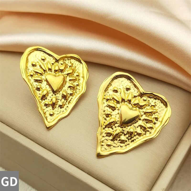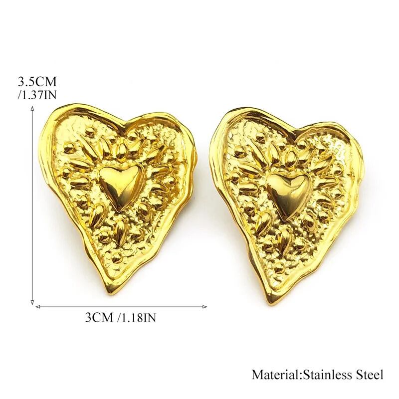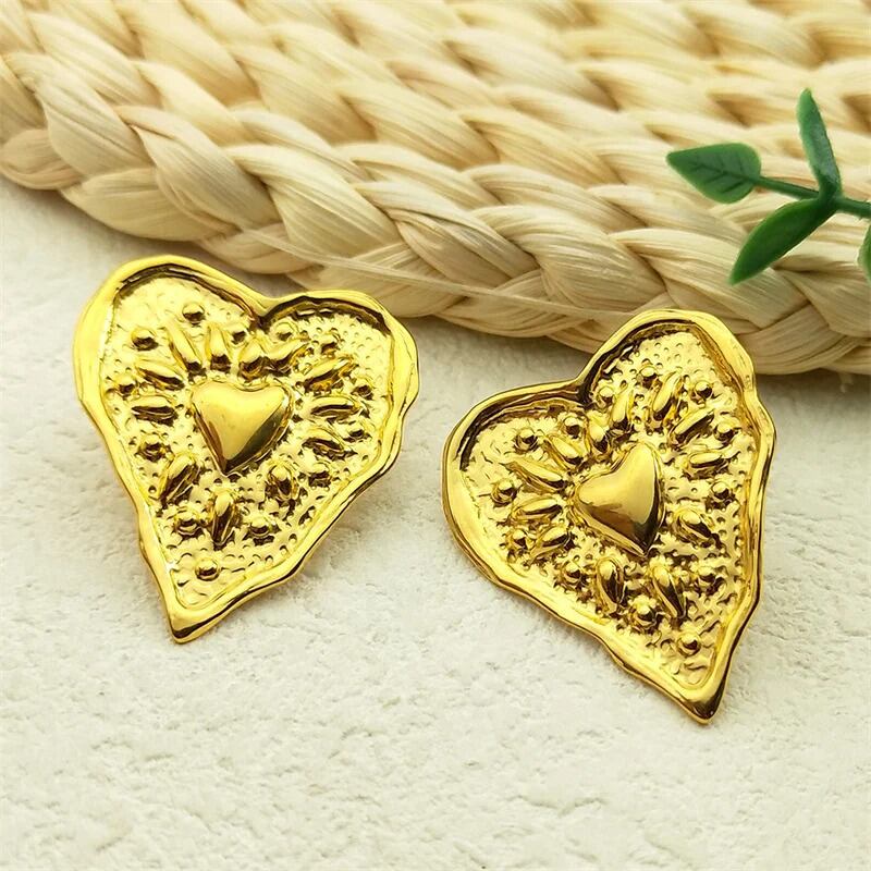 スタイル:ステンレススチール不規則なハートテクスチャスタッドピアス