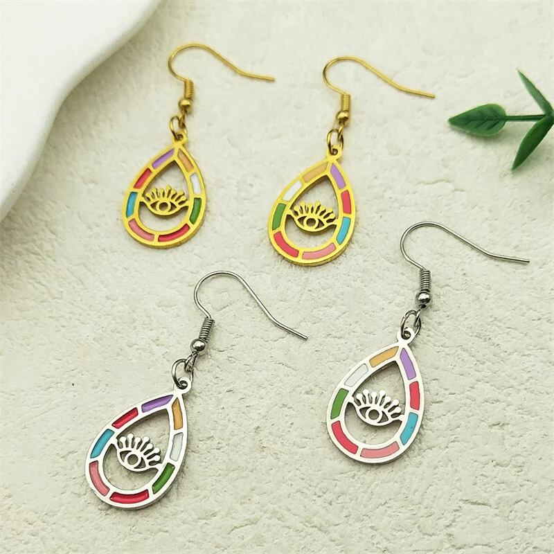 スタイル:邪眼オーバルカラフルエナメルドロップピアス