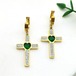 ファイン ファッション:チャームクロスグリーンラブハートドロップピアス