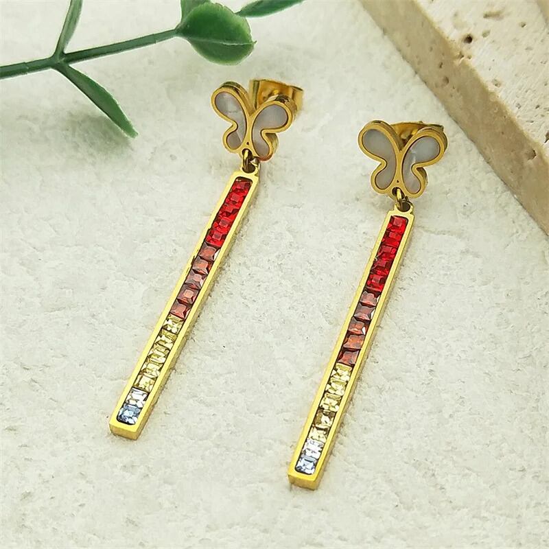 カラフル バー スティック ロング ドロップ ピアス レディース ガール ステンレス スチール ゴールド カラー パーティ ジュエリー ギフト
