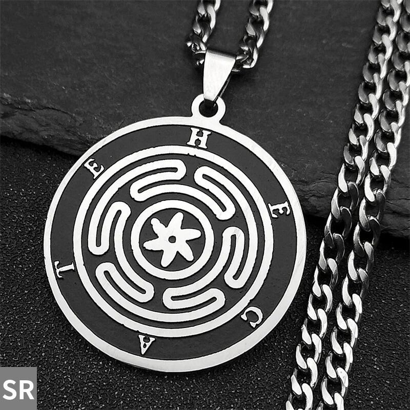 ギリシャ 神話 ヘカテ 車輪 ウィール レター ペンダント ネックレス メンズ レディース ステンレス スチール シルバー カラー お守り ジュエリー ギフト