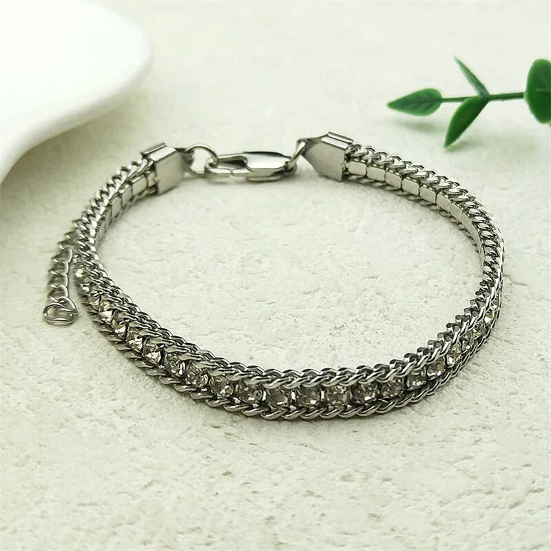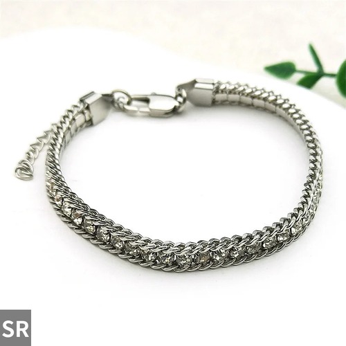 レディース メンズ シルバー カラー クリスタル ラインストーン ブレスレット ステンレス スチール ジュエリー アクセサリー パンク ヒップ ホップ チェーン バングル ギフト