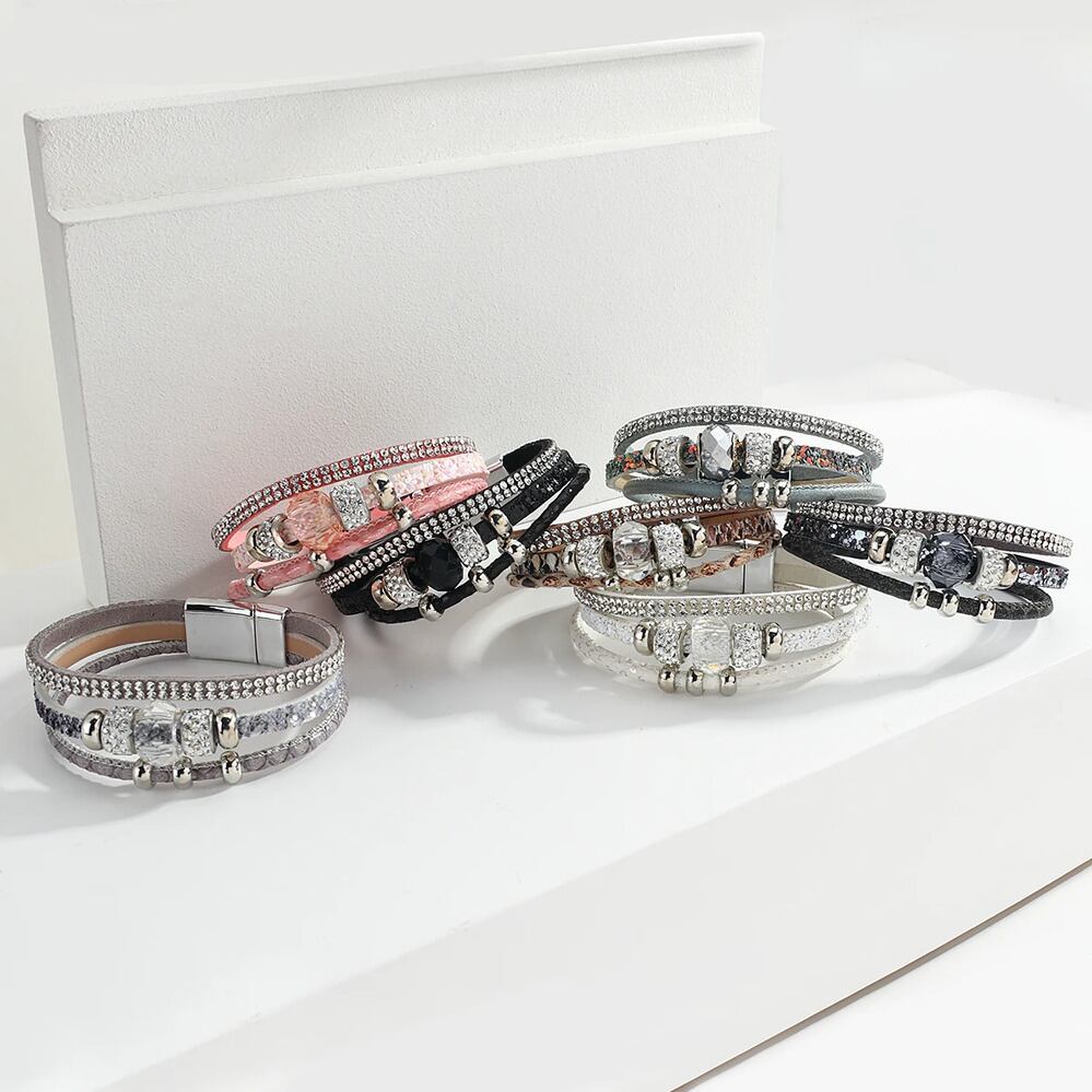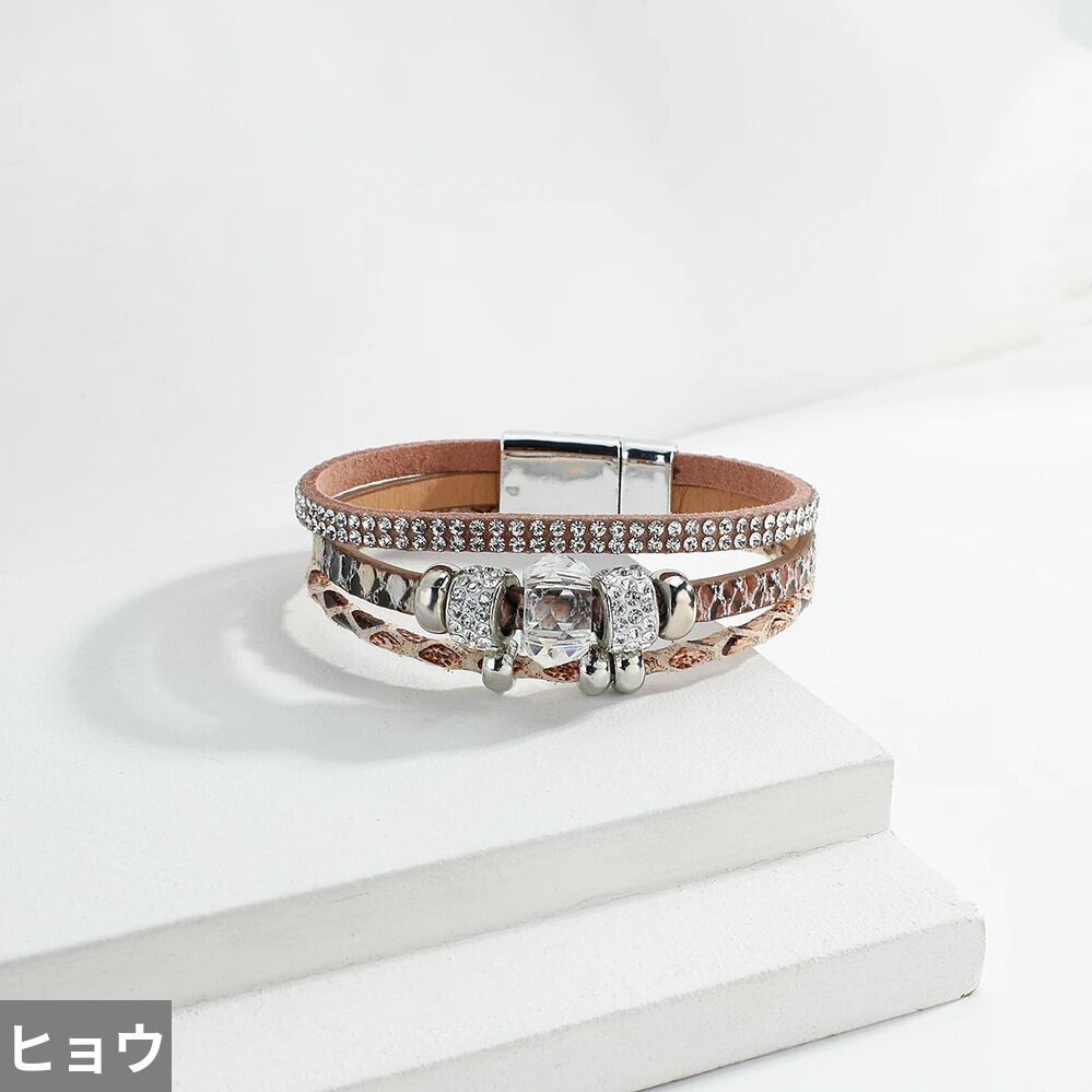 チャーム ブレスレット ラインストーン クリスタル レザー ビーズ レディース メンズ シャイニー マルチレイヤー