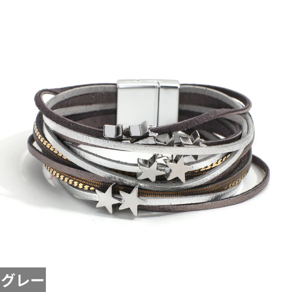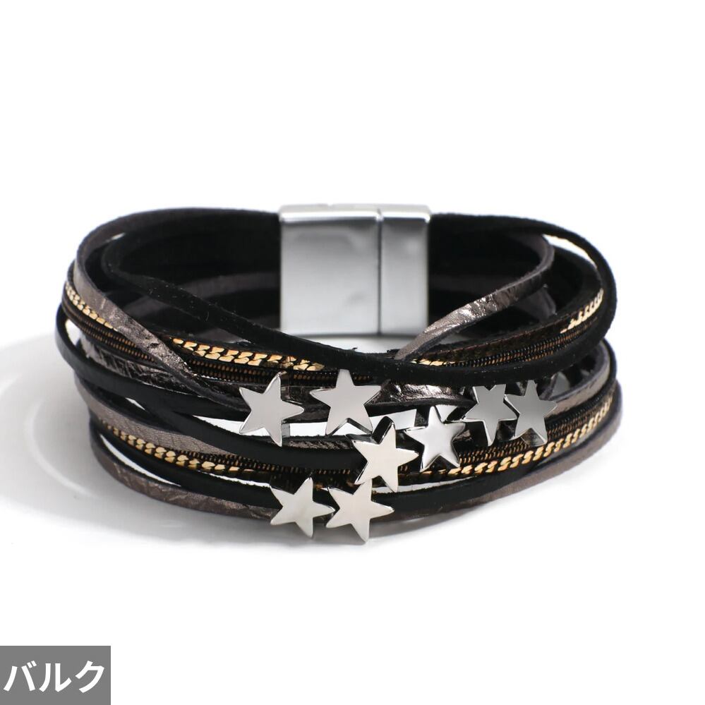 チャーム バングル ブレスレット チェーン レザー 星 レディース 多層 マルチレイヤー スリム ストリップ スター
