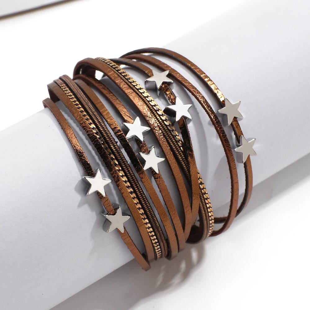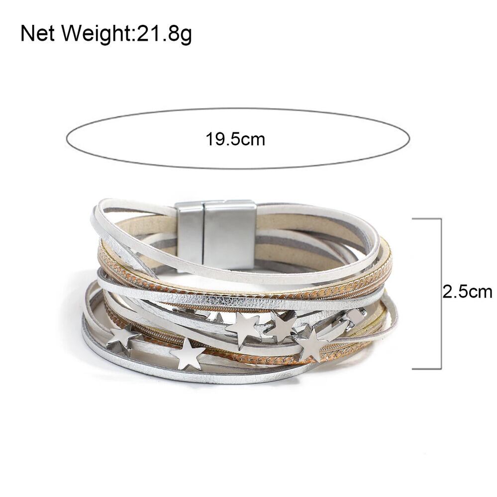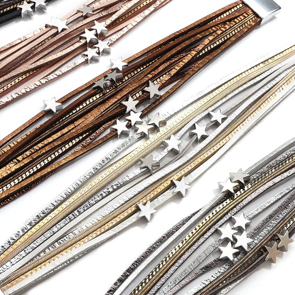 多層 マルチレイヤー スリム ストリップ スター 星 チャーム レザー ブレスレット レディース ファッション チェーン ラップ バングル ジュエリー