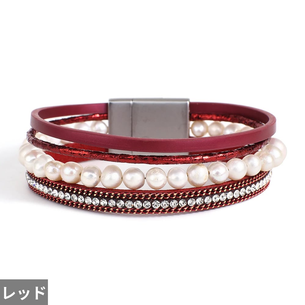 バングル ブレスレット シンプル レザー ビーズ パール レディース ナチュラル フレッシュ 水 純正 ファッション