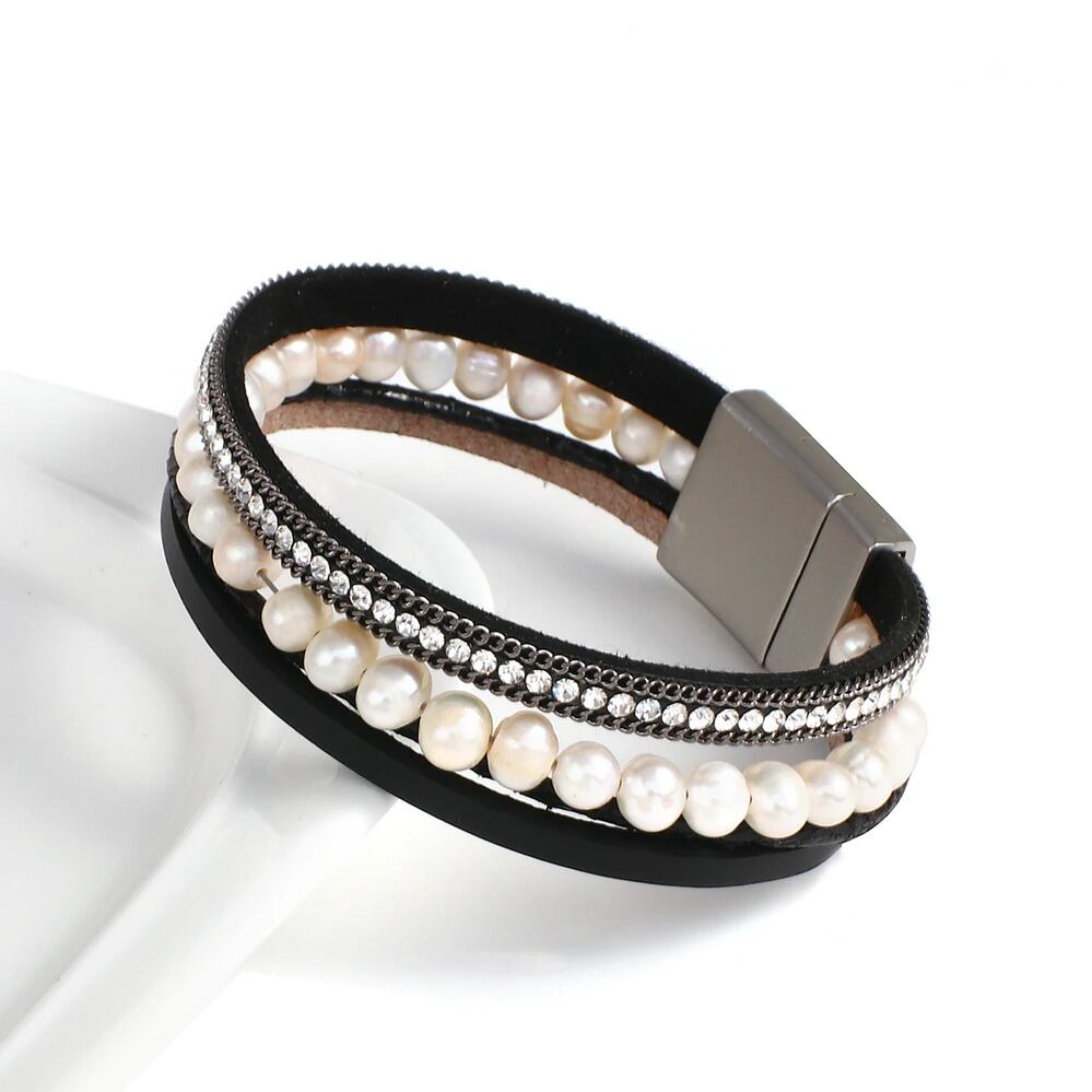 ナチュラル フレッシュ 水 パール ビーズ 純正 レザー ブレスレット レディース ファッション シンプル ラップ バングル ジュエリー