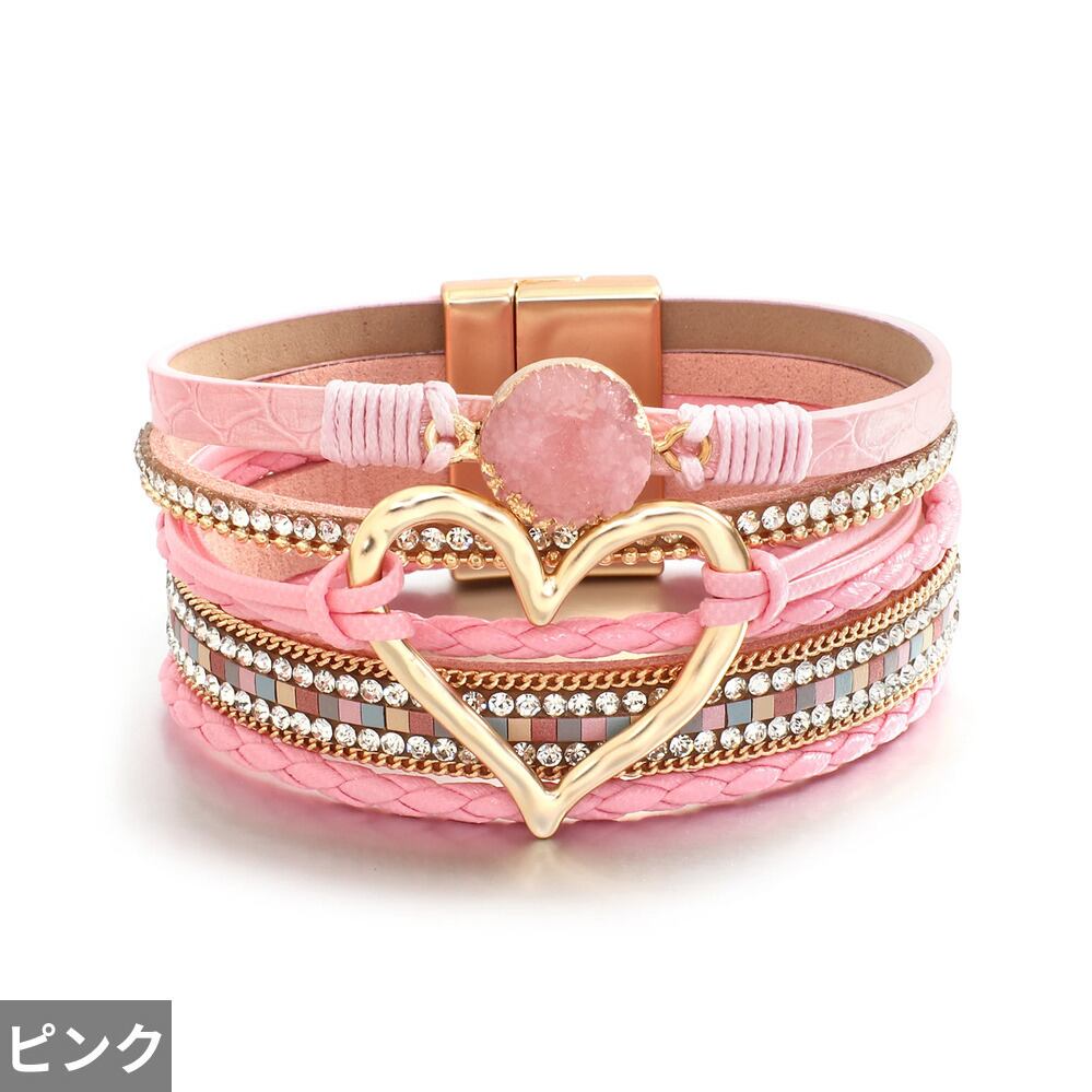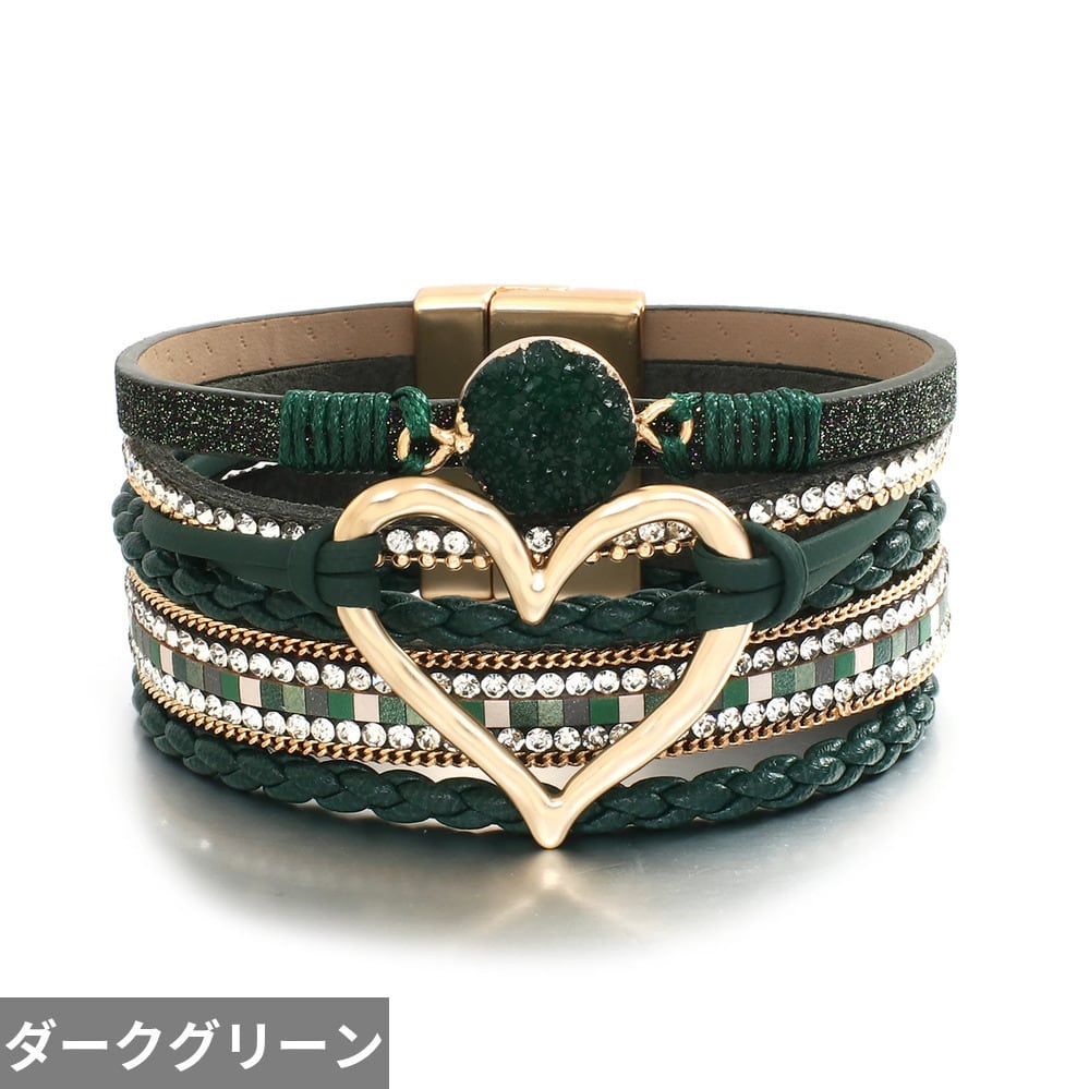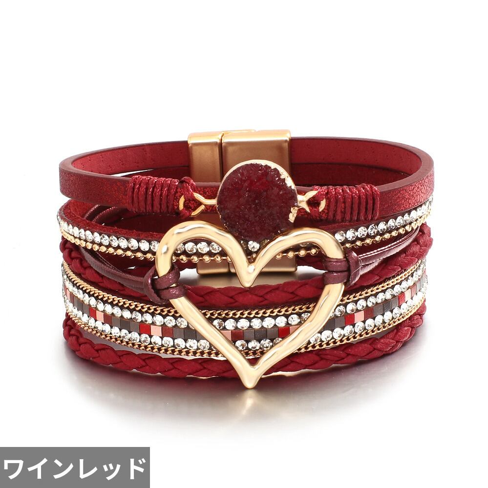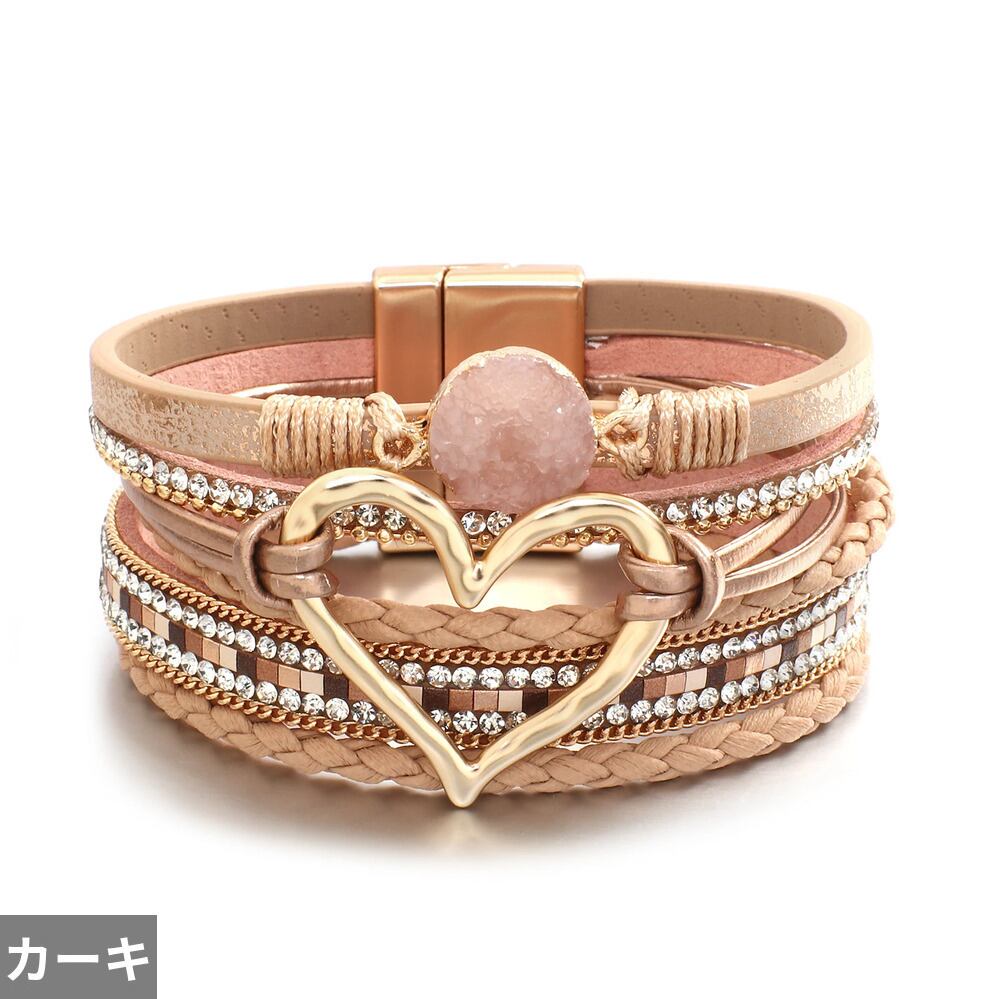 チャーム バングル ブレスレット ラインストーン ハート レザー メタル LOVE レディース ファッション