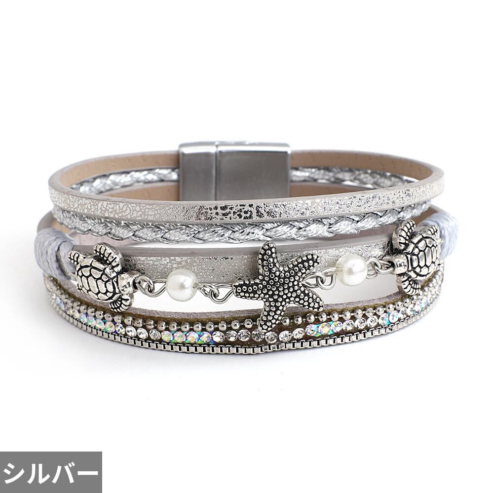 ボヘミアン パール ビーズ レザー ブレスレット レディース メンズ ヒトデ 動物 アニマル カメ タートル クリスタル チェーン 夏 サマー ファッション ビーチ ジュエリー