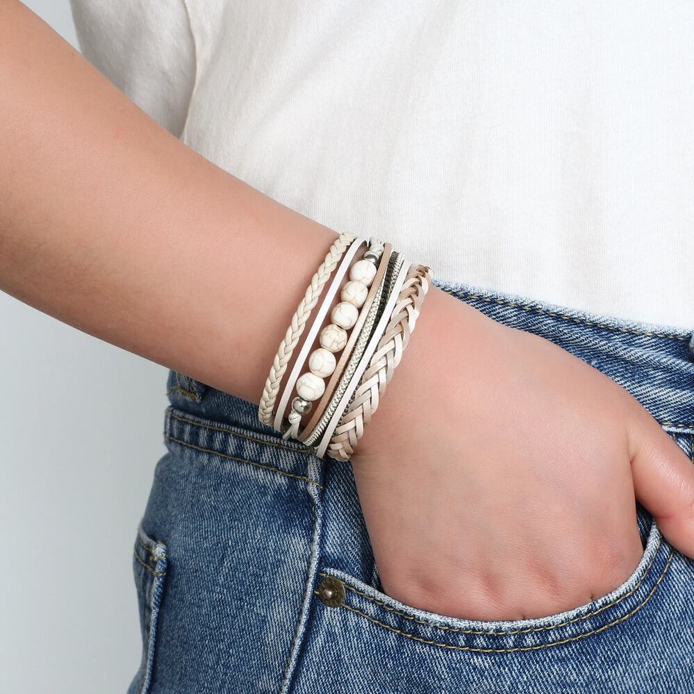バングル ブレスレット クリスタル ビンテージ チェーン ストーン レザー ビーズ レディース メンズ 多層 マルチレイヤー 三つ編み
