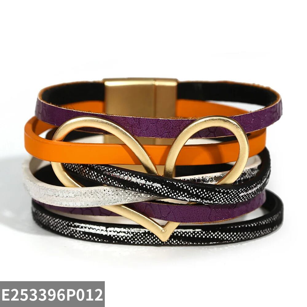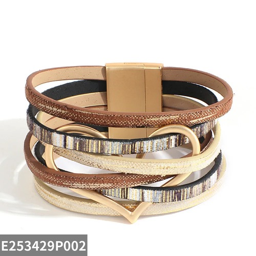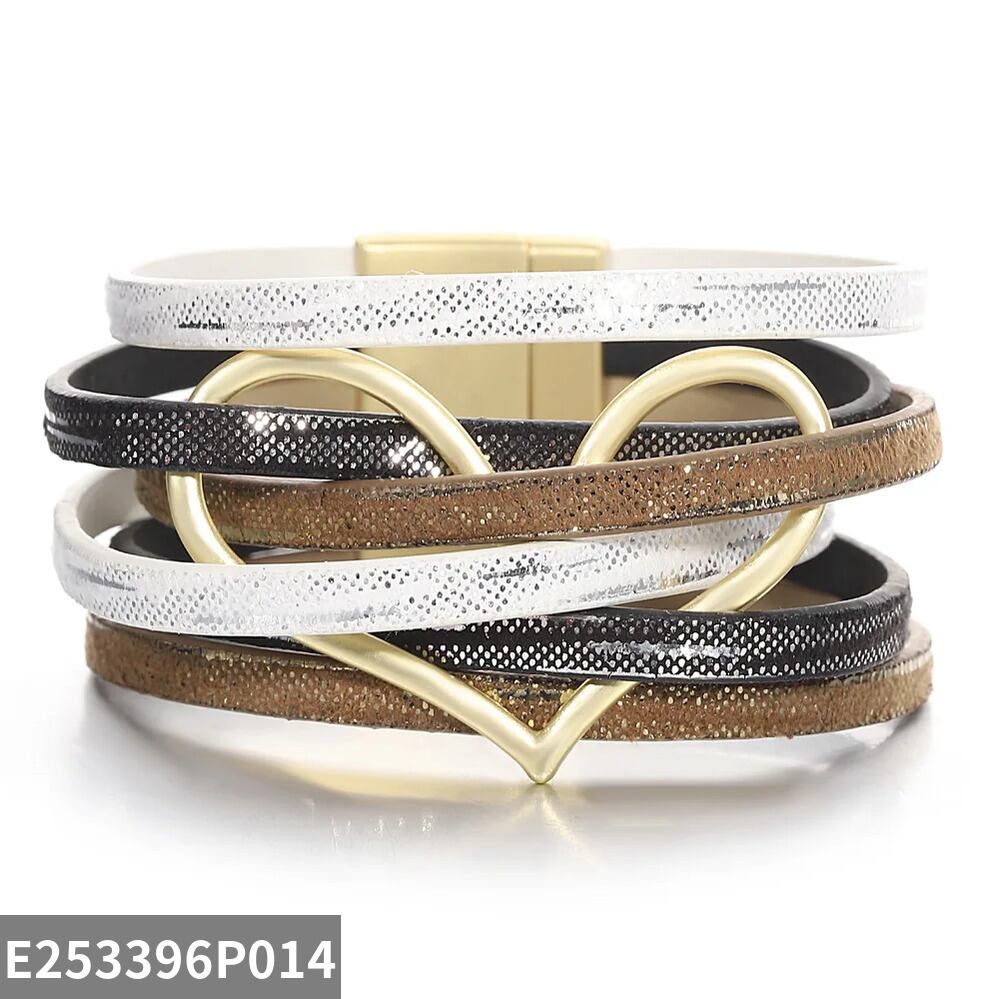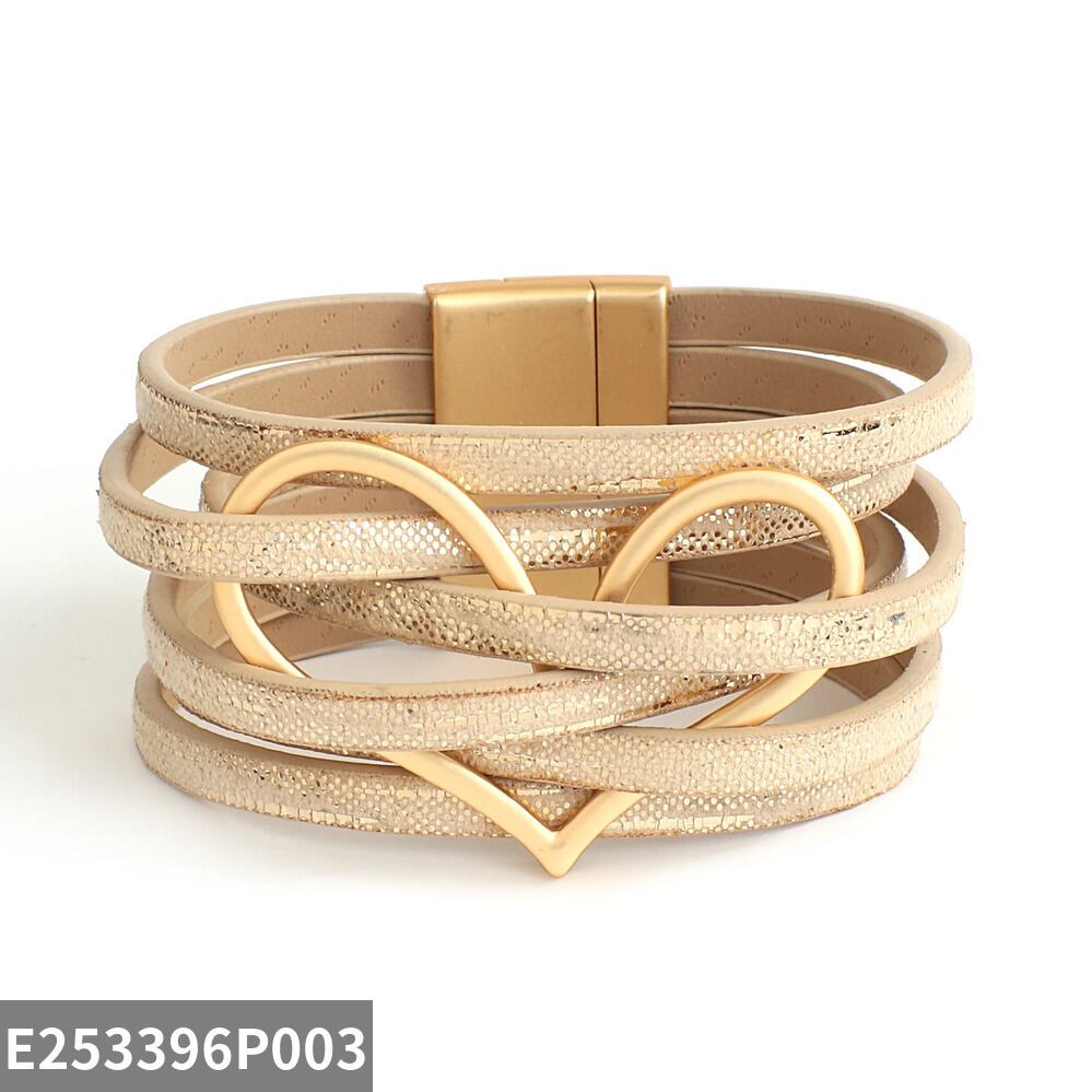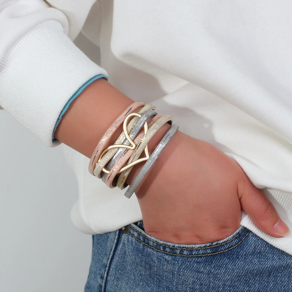 ゴールド カラー メタル ハート レザー ブレスレット レディース チャーム 多層 マルチレイヤー 幅 ラップ バングル ジュエリー ギフト