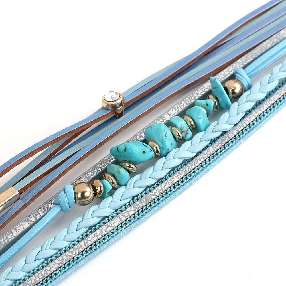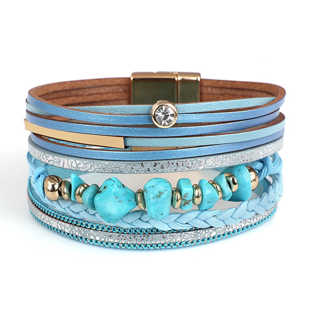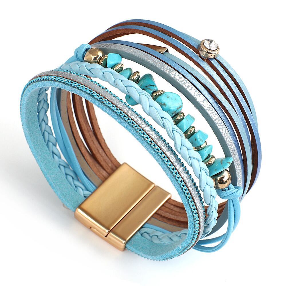 ビンテージ ナチュラル ストーン レザー ブレスレット レディース メンズ BOHO ハンドメイド 編組 クリスタル 多層 マルチレイヤー ラップ チャーム ジュエリー