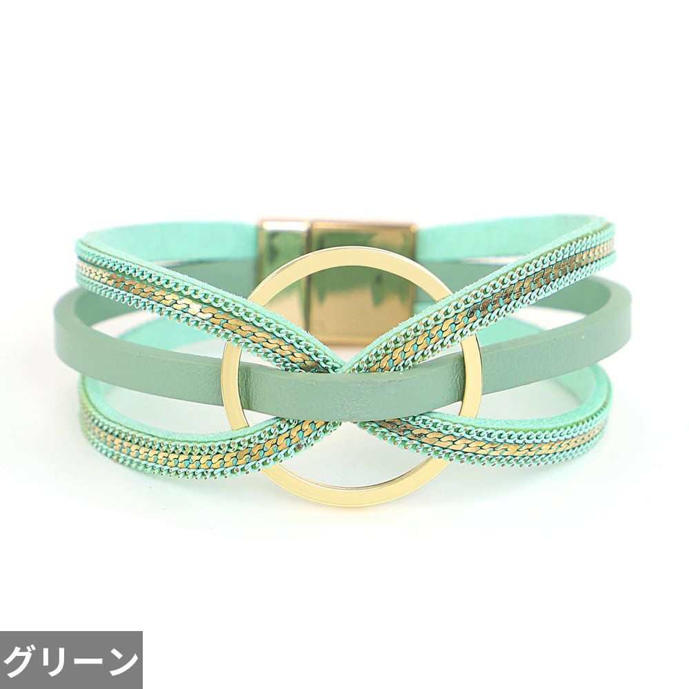 チャーム ブレスレット ゴールド サークル クロス レザー リボン レディース メンズ シック ツイスト