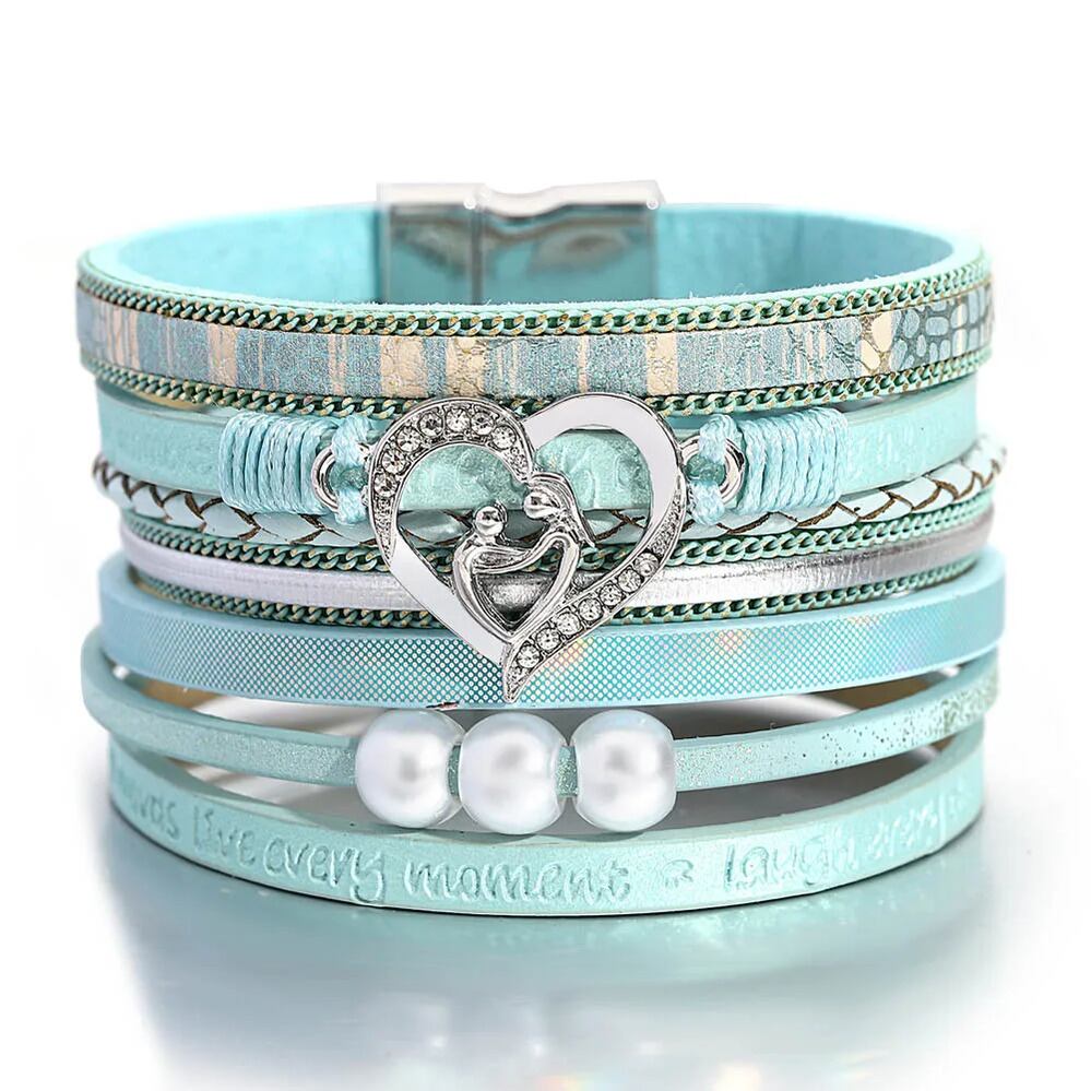 ビンテージ ハート パール 多層 マルチレイヤー レザー ブレスレット レディース メンズ BOHO 幅 ラップ チャーム ジュエリー マザー 日 ギフト