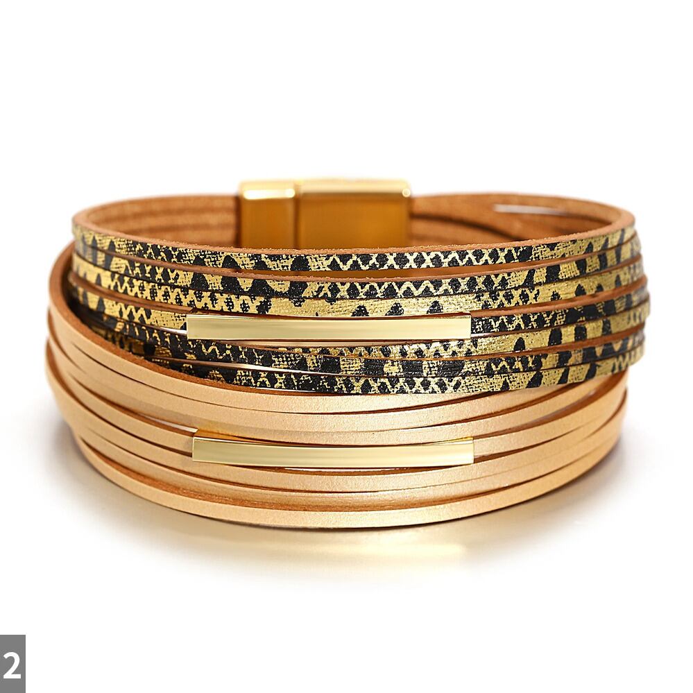 バングル ブレスレット レザー メタル レトロ レディース エスニック プリント BOHO チューブ 多層 マルチレイヤー
