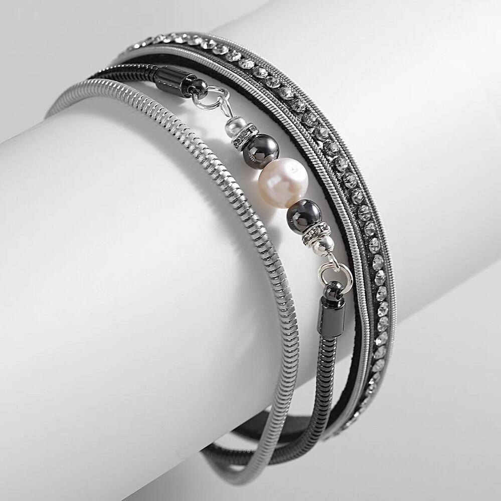 ボヘミアン パール メタル ビーズ ブレスレット レディース メンズ 多層 マルチレイヤー 蛇 スネイク ヘビ 動物 アニマル チェーン クリスタル リンク バングル  チャーム ジュエリー