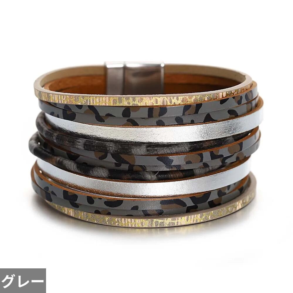 ボヘミアン ヒョウ レオパード 豹 動物 アニマル 印刷 プリント レザー ブレスレット レディース メンズ チャーム 多層 マルチレイヤー スリム ストリップ ラップ バングル ジュエリー ギフト