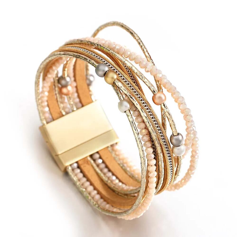 チャーム メタル ビーズ レザー ブレスレット レディース メンズ クリスタル チェーン 多層 マルチレイヤー クロス スリム ストリップ ラップ パーティ ジュエリー