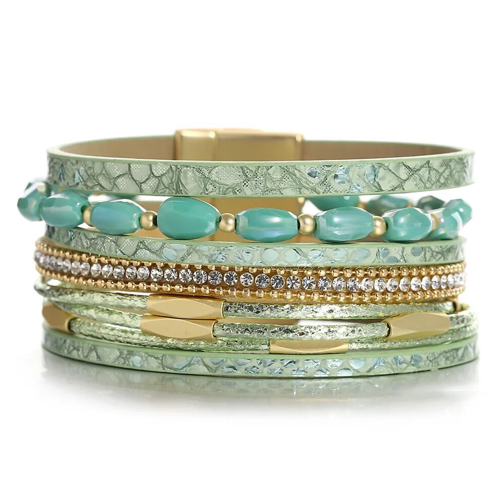キラキラ フィル ストリップ レザー ブレスレット レディース メンズ トレンド ストーン ビーズ ラインストーン チェーン ラップ 幅 チャーム ジュエリー
