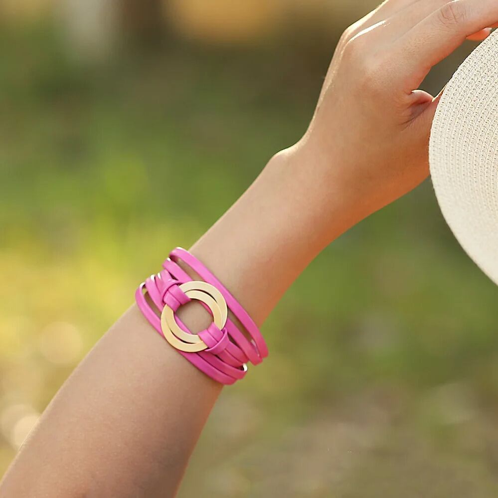 ブレスレット サークル レザー レディース 蛍光 カラフル ファッション 透かし ダブル 多層 マルチレイヤー ラップ パーティ