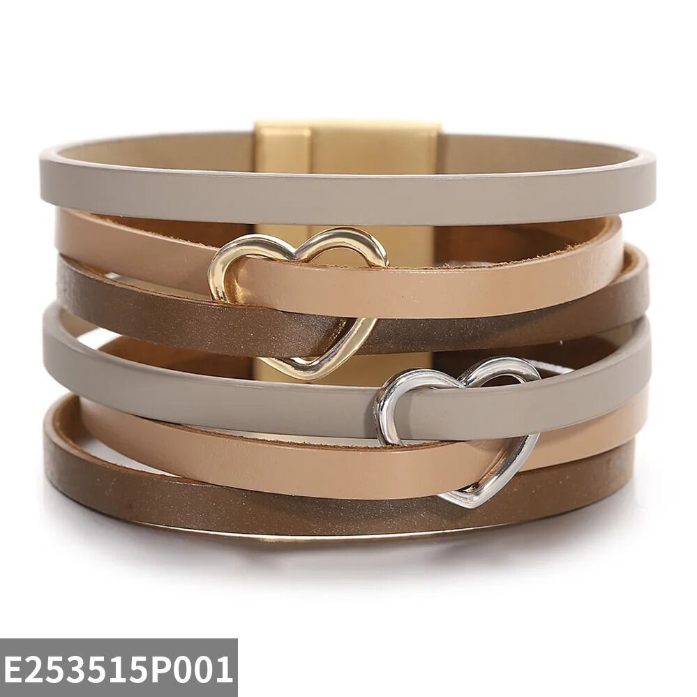 かわいい ゴールド シルバー カラー ハート ラップ レザー ブレスレット レディース マルチカラー レイヤー ハンドメイド チャーム ジュエリー