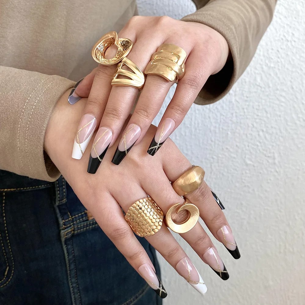 分厚い ゴールド カラー リング 指輪 レディース メンズ イレギュラー 幾何学 マット 弾性 ロープ 繋がり 指 フィンガー トレンド ジュエリー