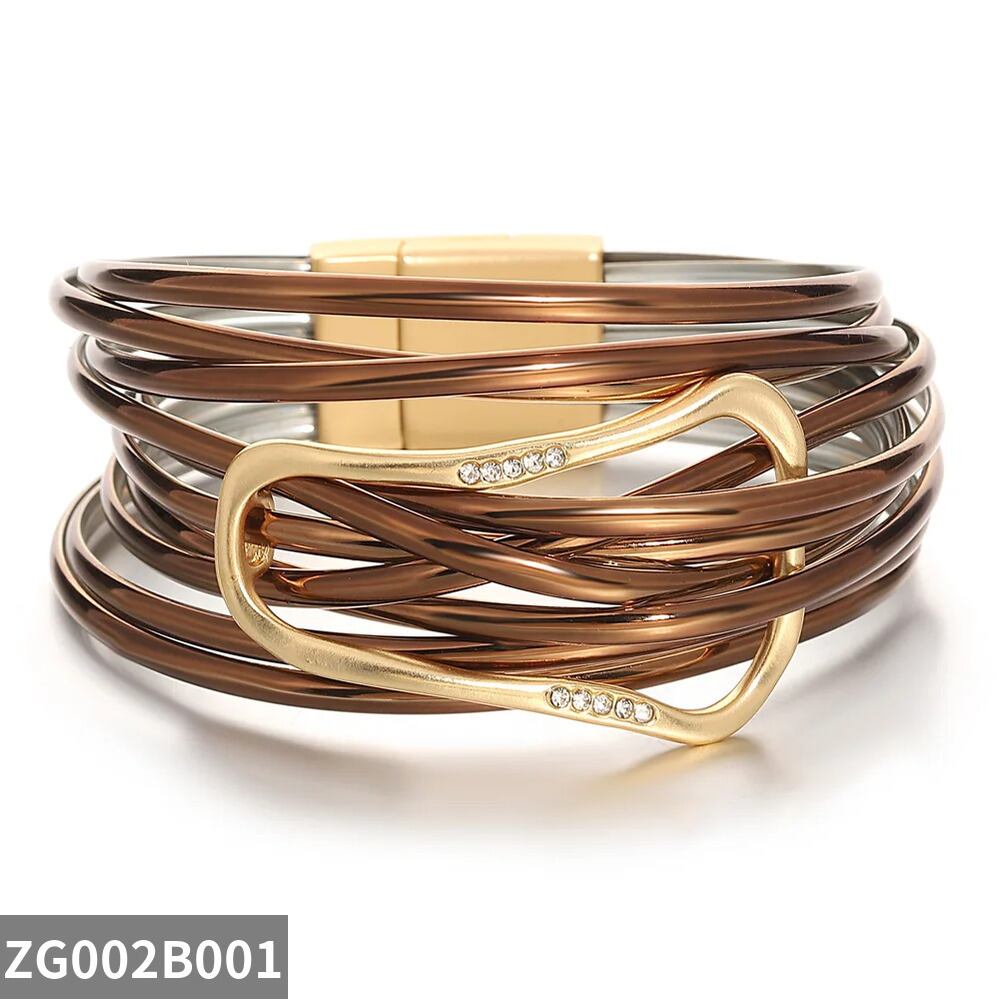 バングル ブレスレット ゴールド レザー メタル レディース イレギュラー 幾何学 ラップ トレンド パンク カラー 多層
