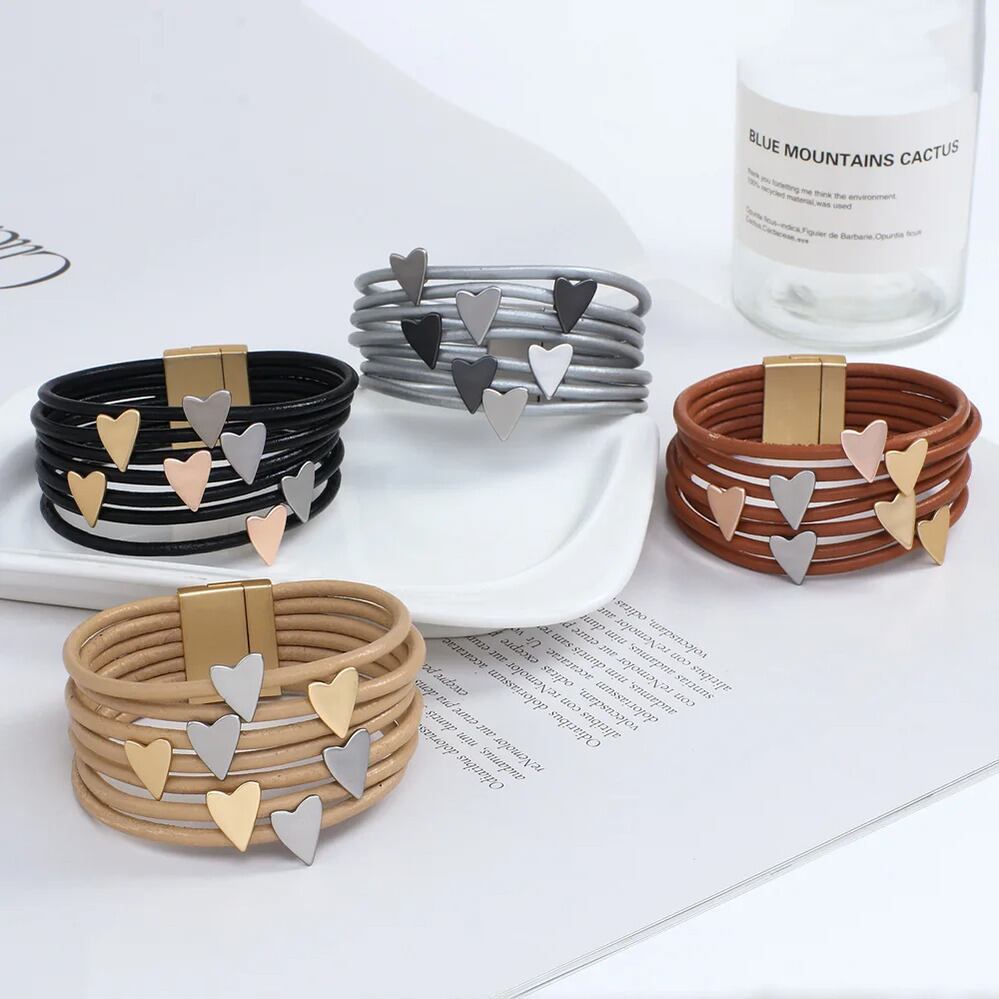 マルチカラー メタル ハート ラップ ブレスレット レディース トレンド チャーム スムーズ レイヤー レザー バレンタイン 日 ギフト